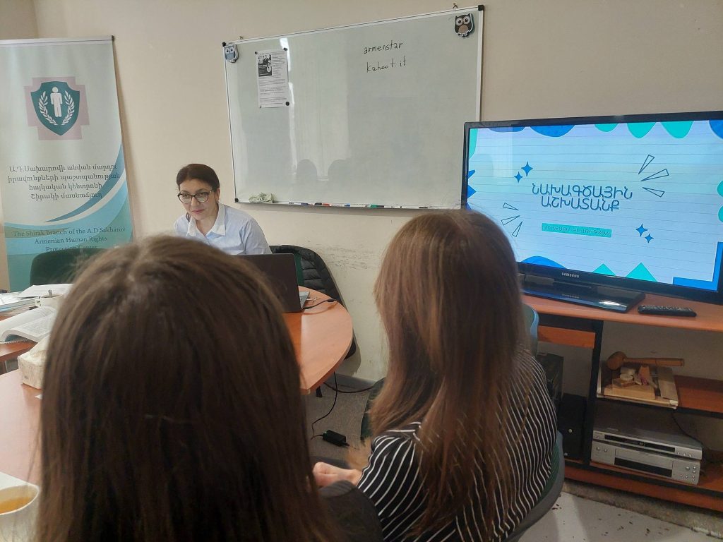Մարտի 28-ին «Ա․Դ․ Սախարովի անվան մարդու իրավունքների պաշտպանության հայկական կենտրոն» հասարարակական կազմակերպության Շիրակի մասնաճյուղի TOT ակումբի շրջանակներում տեղի ունեցավ հանդիպում-քննարկում «Նախագծային աշխատանք» թեմայով։